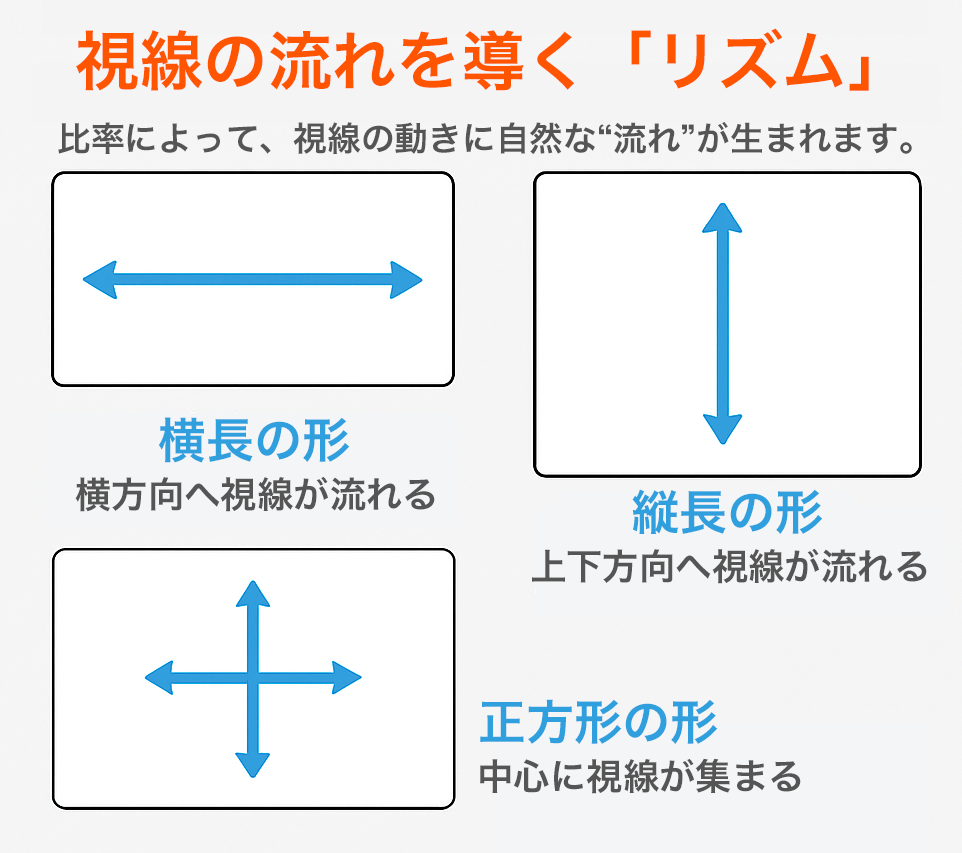 比率には、視線の動きをスムーズにする“流れ”が生まれるので、この「視線誘導」が自然であるほど、人は「安定=美しい」と感じてしまうわけなんです。