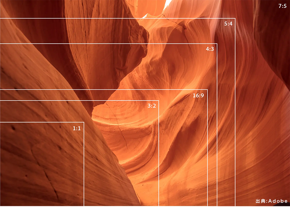写真の世界は比率の宝庫。インスタの正方形(1:1)は象徴的です。3:2や4:3の比率は、カメラのセンサーやプリントサイズに合わせて最も見栄えが良くなる黄金律的な比率として使われます。比率を意識することで、構図が安定し、見る人に自然で美しい印象を与えることができます。